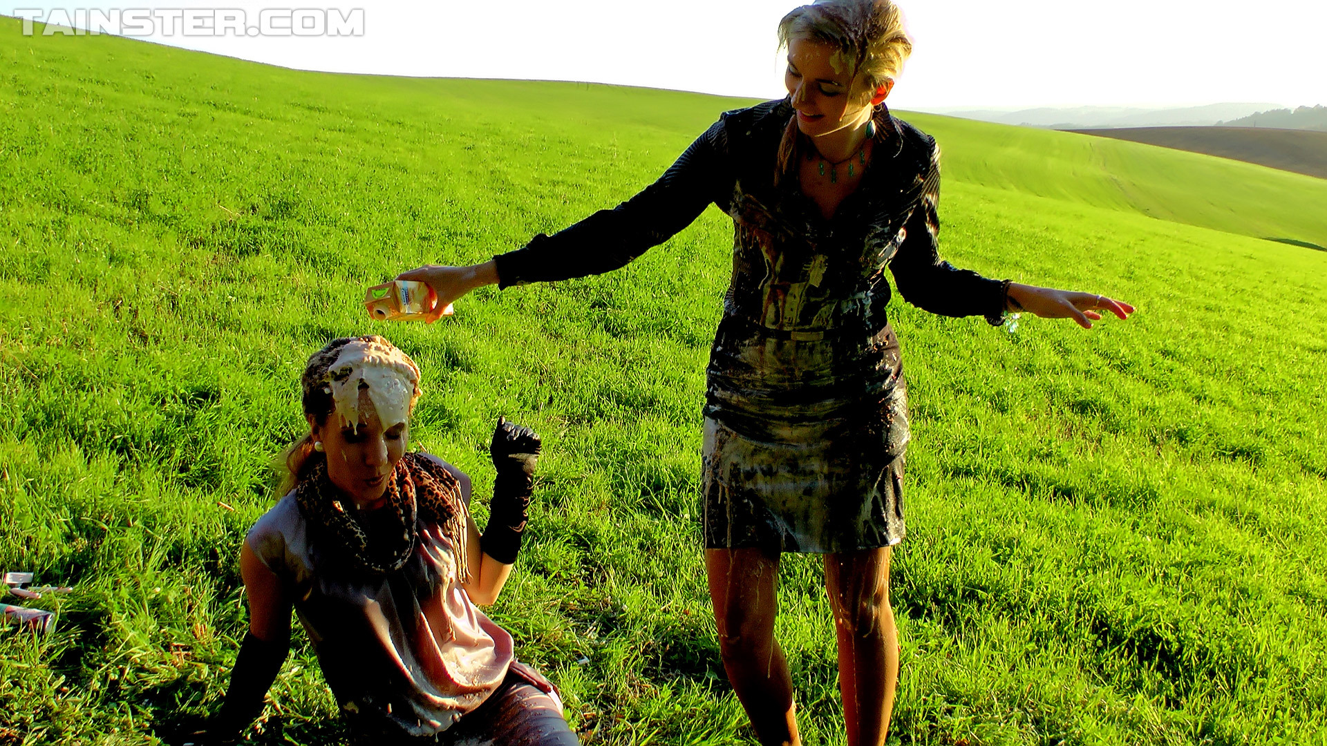 When these two beauties have some car trouble and find themselves stuck in the middle of a field, they make the most of it as they were planning on a sexy picnic anyway! Looking fine as hell in their fancy, satin outfits, they pull out their food and appear as though they're about to have a civil picnic, but with tensions running high from the...
