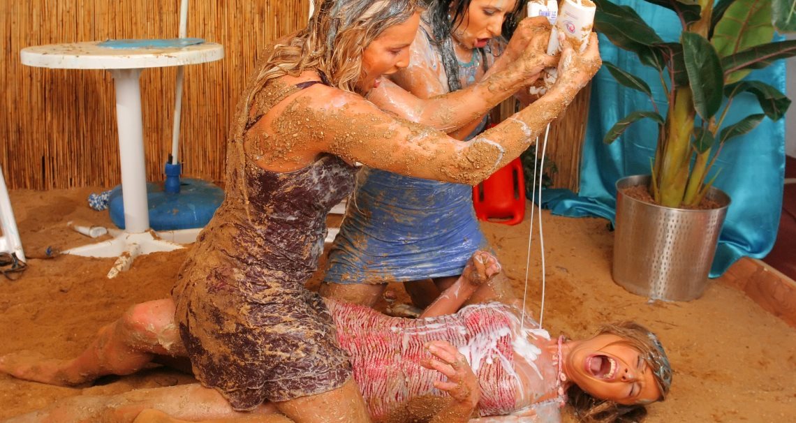 Francesca Felucci, Miss Piss, and the lovely Victoria Rose get lost while on a 'remote beach getaway' with each other and are left with nothing but their toiletries. Blaming Miss Piss for their bad luck they start squirting her with soap. Miss Piss says “fuck that”, and grabs her shower gel and soon it's a soapy, all-out warfare. The girls are t...