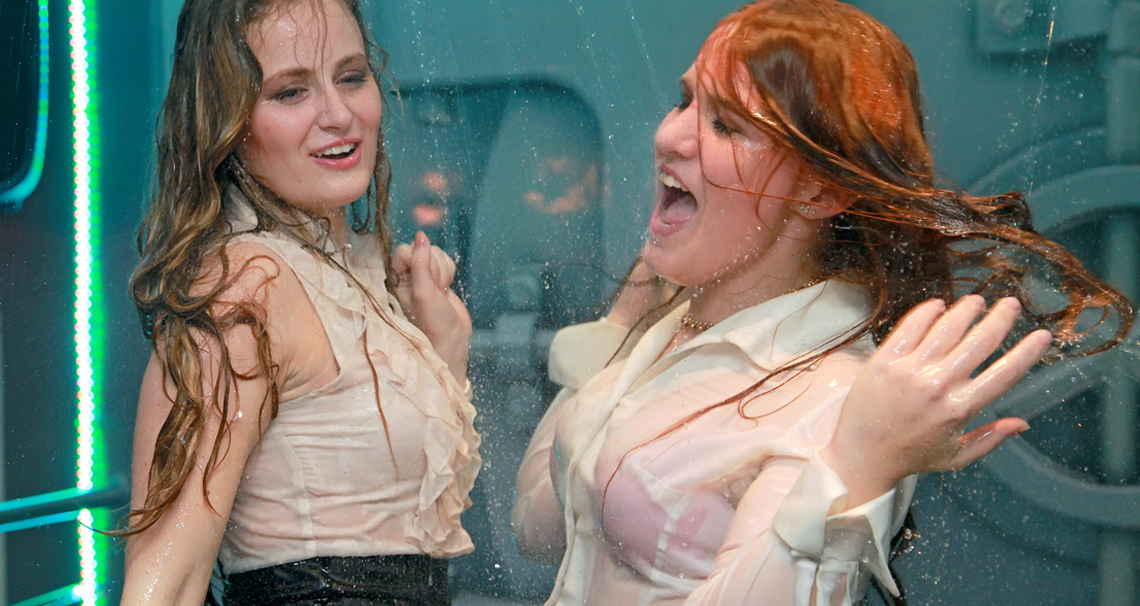 Amateur girls in chic outfits are dancing under the party shower. Their clothes get soaking wet and start sticking to their young bodies. You can see they're getting extremely horny. When they dance, you see the greatest tits through the transparent blouses. The hypnotizing view makes you hard. You just must keep looking. Enjoy all the water sli...