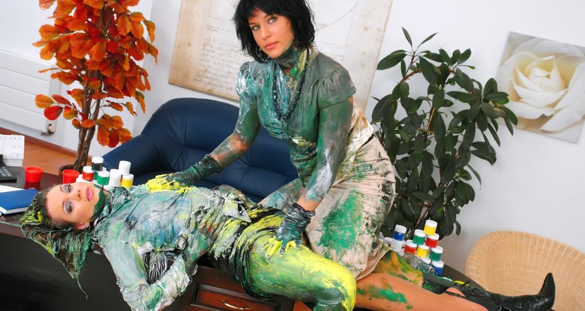 Interior Designer Diana was helping Kate pick paint colors for her new downtown flat, showing her samples and trying to be as helpful as possible, even going so far as to demonstrate for Kate what the paint would look like on bare naked flesh. Messy lovers, time to get your fingers dirty in this paint smearing update that has these high class, s...