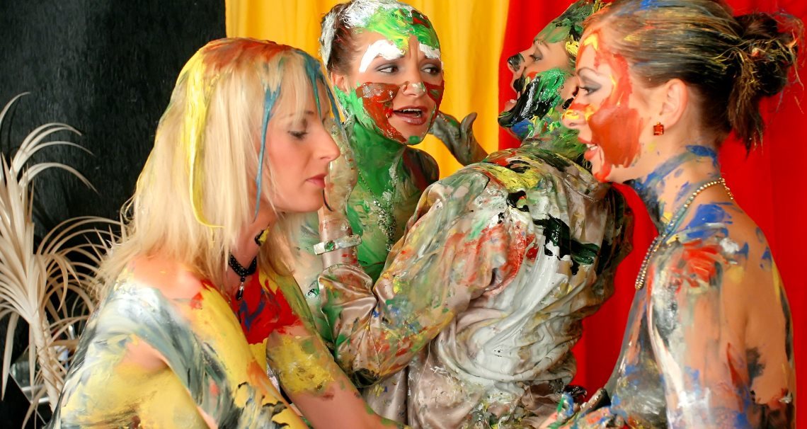 Not only children play with colors. Sometimes it is nice to relax. In this scene you will see sexy ladies changing into dirty color chicks. Enjoy this color mess and sexy girls in a very exciting combination...