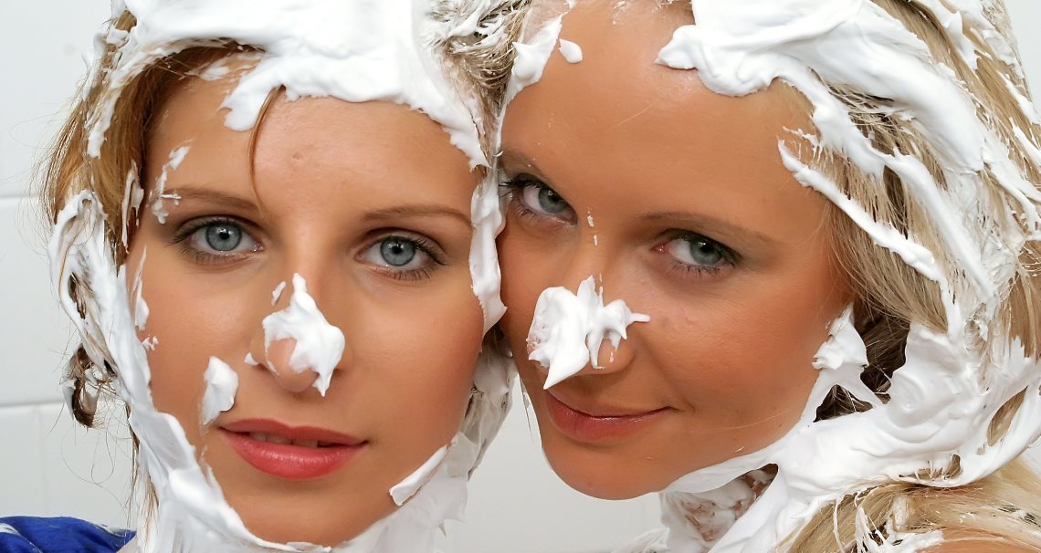Bad day? Lets make some fun then. That is probably what are these girls doing. We caught them when they started a foam war. Enjoy with us this show for Gods, two sexy girls and dirty mess around...